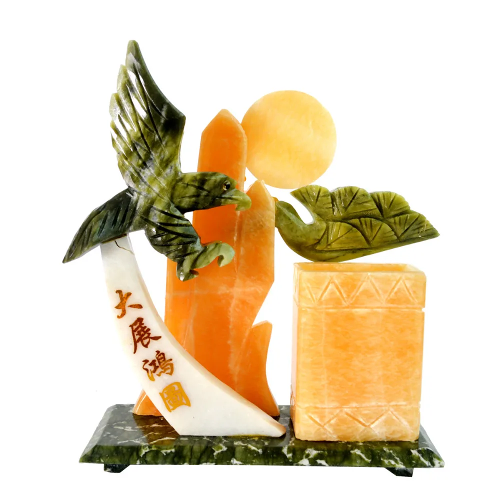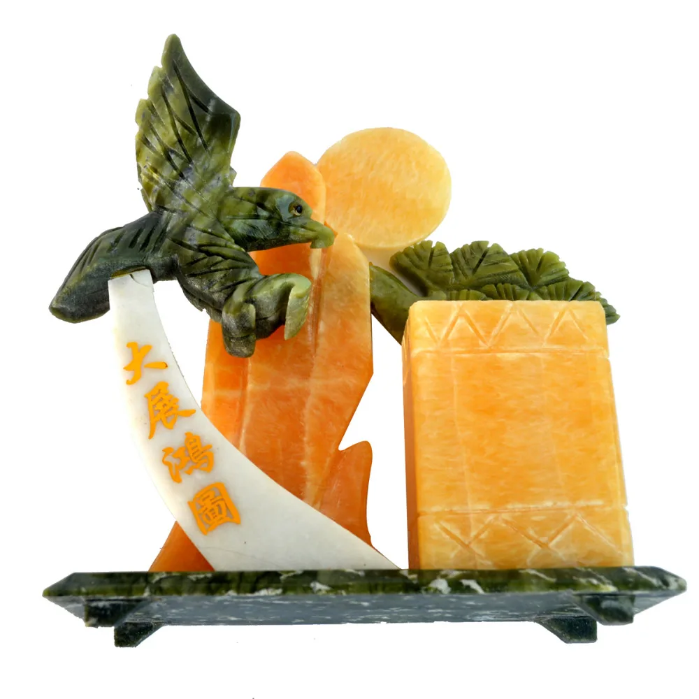 Review Feng Shui Natural Jade stone mountian W eagle for Good FutureGood Luck J2079