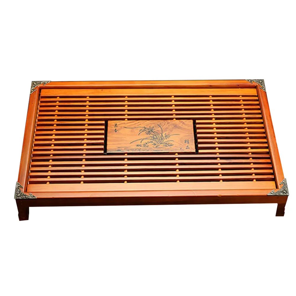 Rectangular Easy Clean Small Tea Tray Water Storage Drainage Home Wooden Japanese Style Table Drawe