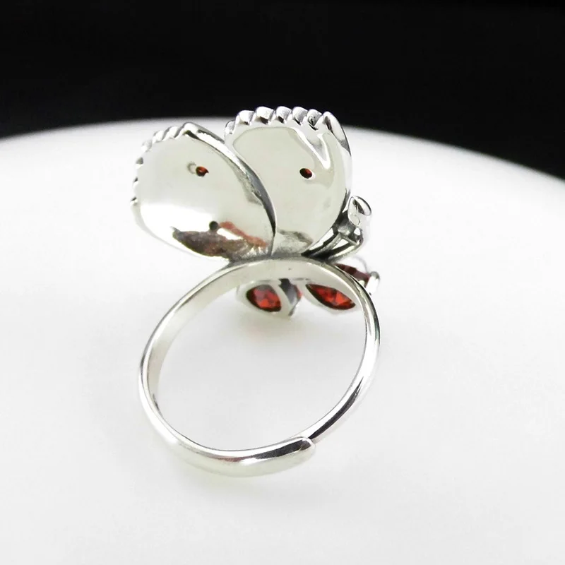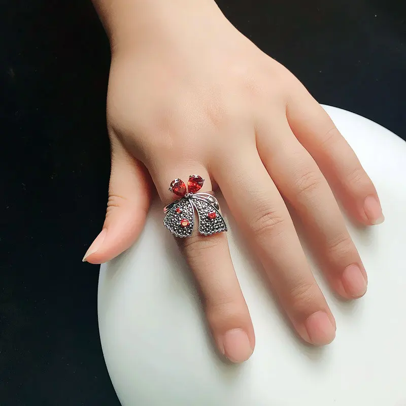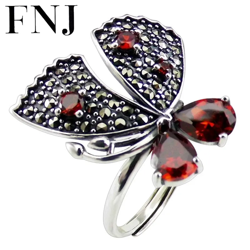 REVIEW TOP SELLER FNJ MARCASITE Butterfly Ring 925 Silver New Big Red Zircon Original S925 Sterling Silver Rings for