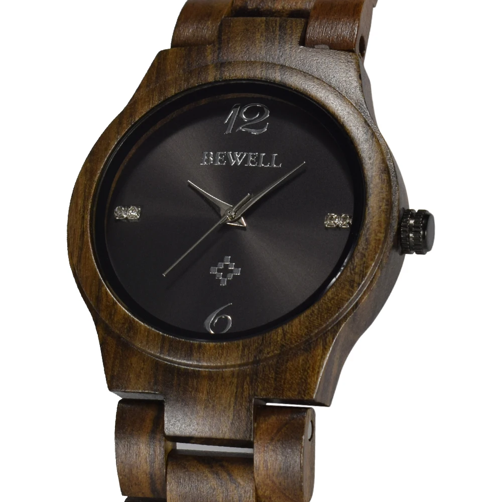 BEWELL Women Wood Watches 100% Handmade Swirl Marks Dial Natural Butterfly Buckle Round Ladies Wris